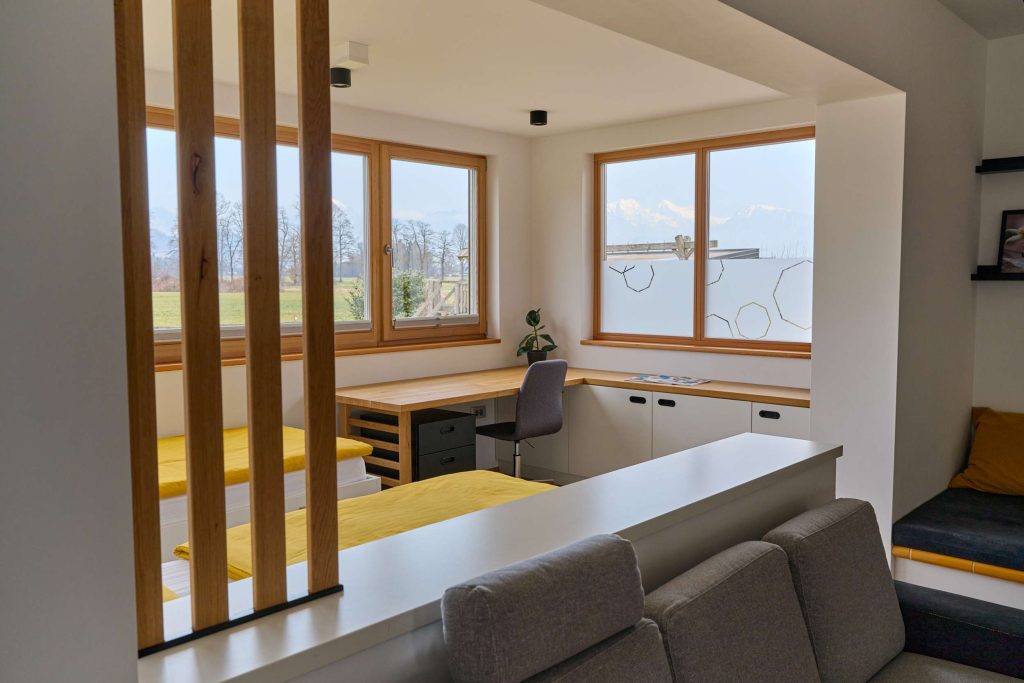 V mirnem okolju, med Kranjem in Škofjo Loko, leži nov pritlični apartma, ki ponuja čudovit pogled na neokrnjeno naravo in je opremljen v modernem slogu.